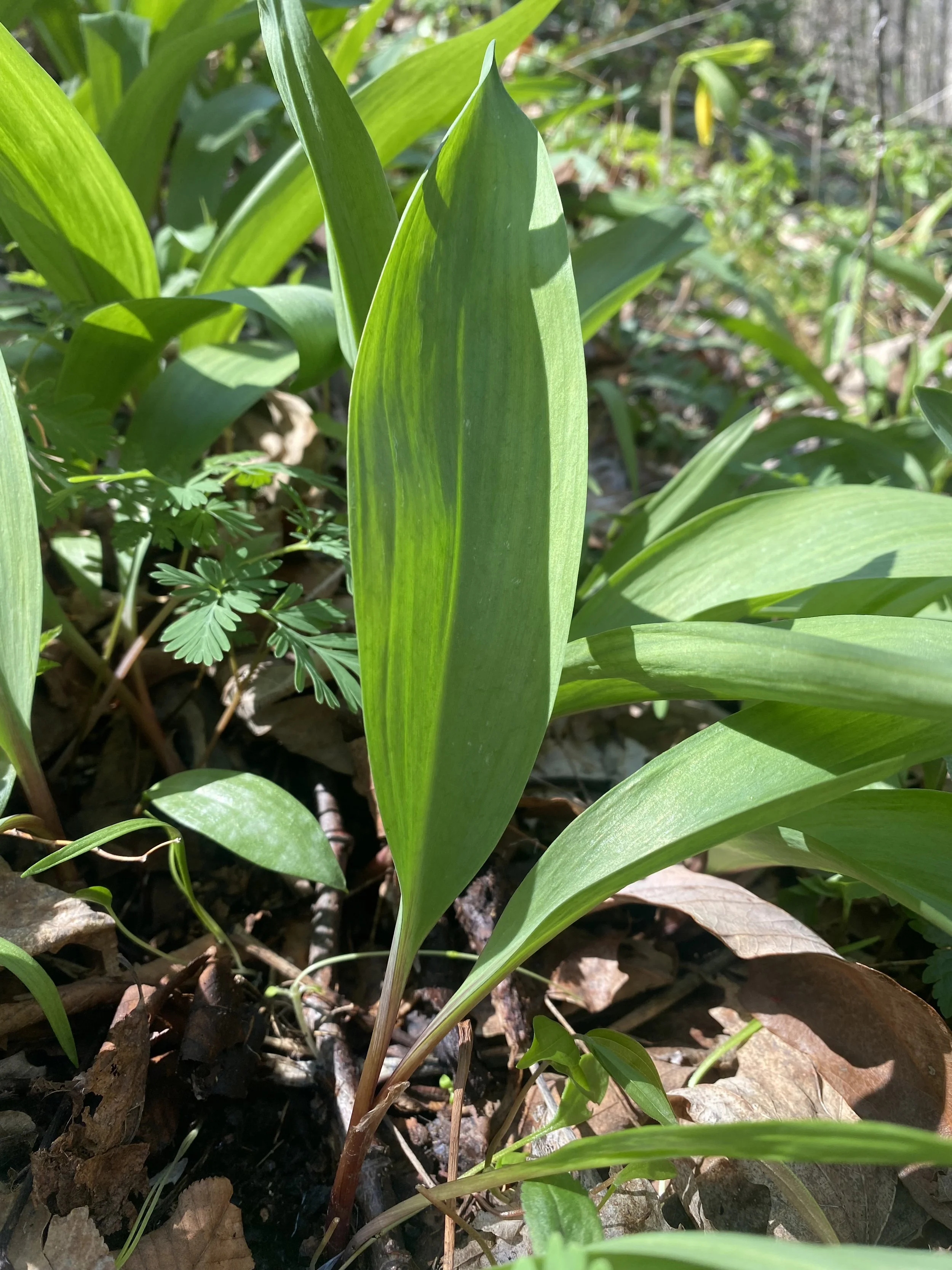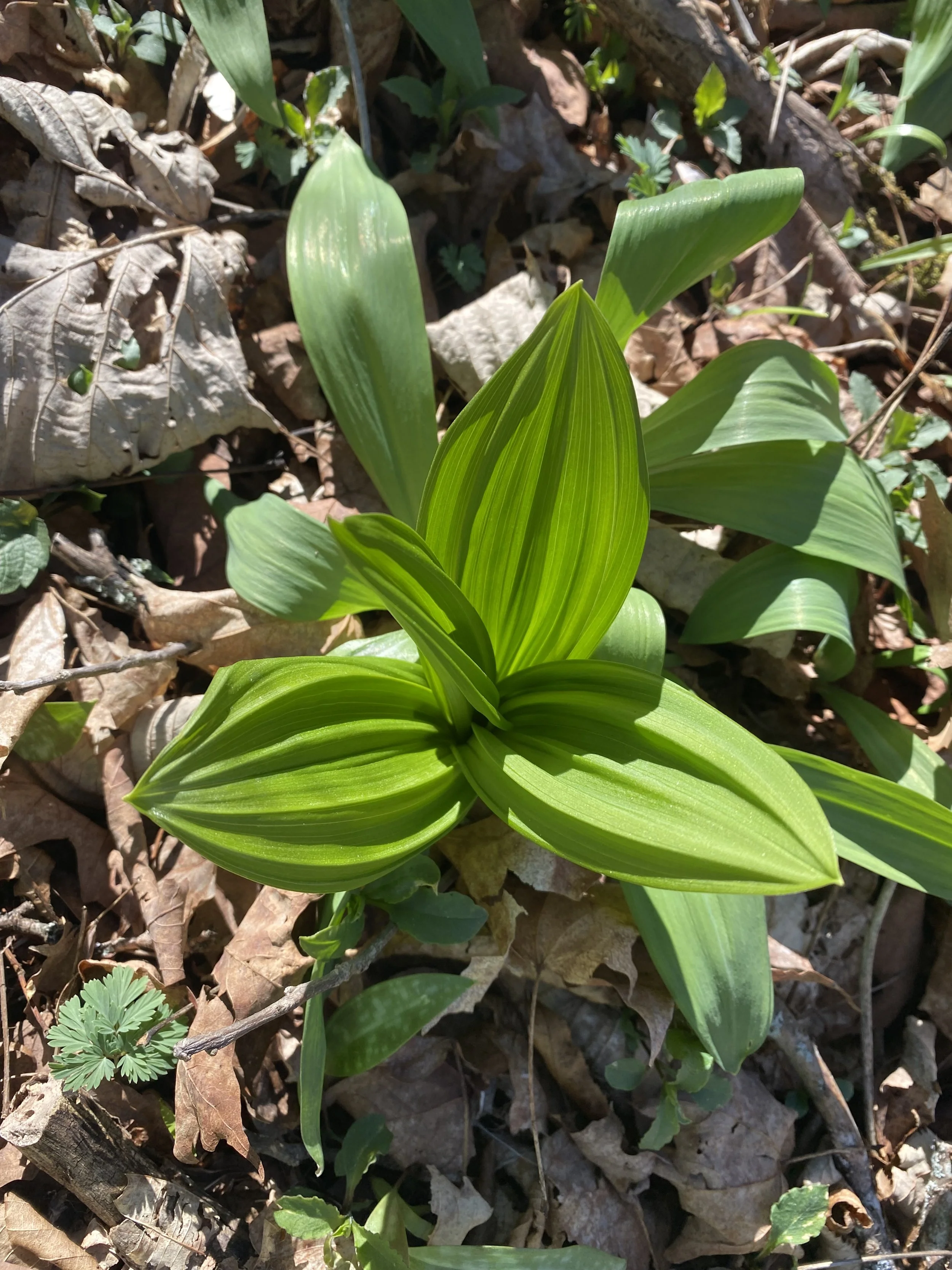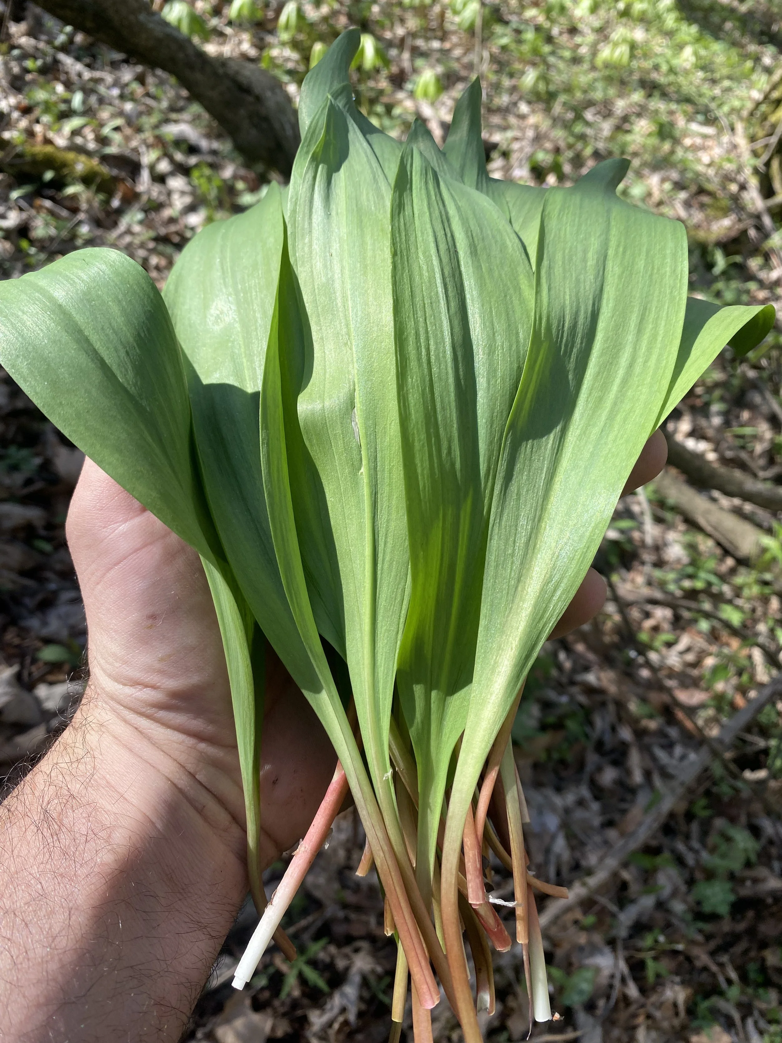 Every spring first come the Morels and then right along with them come the Ramps! Ramps-Allium tricoccumare called by many names such as wild garlic, wild leeks, or ramsons. To me they are a strong wild garlic, in flavor and smell. They can identified by their rubbery leaves ranging from 1-3 leaves per plant, the stems can white or reddish/purple and of coarse the smell is garlic. Look alikes include False Hellebore (pictured growing right in the middle of ramps) and Lily of the Valley (pictured with white flowers) In the Appalachians, Ramps are highly sought after and even whole festivals take place in some small towns. Ramps can be used fresh in cooking, pickled or dried. Sustainability is an important part of harvesting this plant. Many extra careful folks will only take one leaf from each plant, while others will harvest a few bulbs and mostly leaves. Moving from patch to patch is a key, just taking a little from each patch you encounter, which is fine as Ramps grow like carpets sometimes and thinning out an over crowded area is actually healthy for the patch. I use only leaves in my ramp salt and typically only collect a few bulbs to be used in personal cooking each year. You can find our ethically foraged Ramps in our signature gourmet ramps salt. The salt will be back in stock soon!!