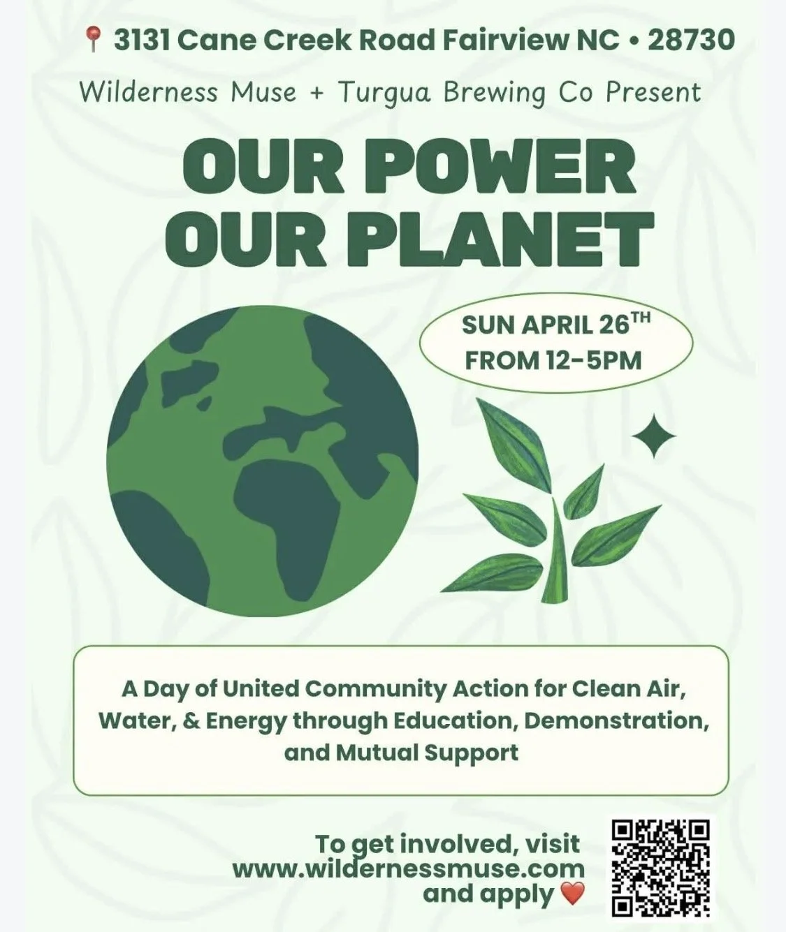 Our Power, Our Planet- Sunday, April 26th 12-5 at Turgua Brewing in Fairview